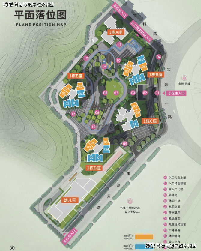 项目位于龙岗宝沙一路和沙荷路交叉口南侧,项目背倚半山,紧邻正中高尔夫球场,四山三水两园环伺,旁边是金地名峰和振业天峦。