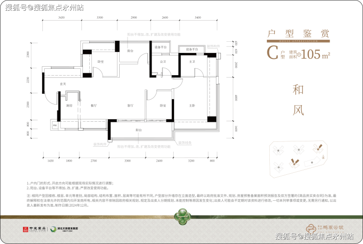 『中建鹏宸云筑』项目即将首发的是东区的3栋和5栋的产品,货量约360套,户型包括:建面约81㎡三房两厅两卫、建面约91㎡四房两厅两卫、建面约105㎡四房两厅两卫、建面约124㎡四房两厅两卫,涵盖四个面积段,细分四种户型。