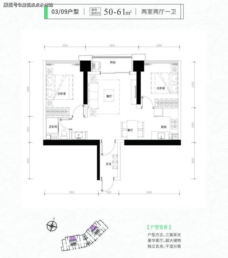 福田即小户型住宅现房——君临天下·君临芯公馆,66套住宅和198套公寓,面积段均为34-76平(一房两厅一卫、两房两厅一卫、三房两厅一卫),使用率高达100%多(每个户型使用率均会有区别)
