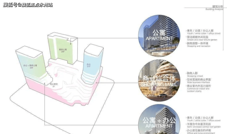 主要业态包含有:商务公寓、集中式商业、甲级写字