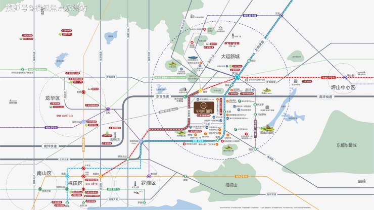 交通:双地铁覆盖(3号线永湖站约500 米,14号线坳背站约1.1公里),14号线 1站达大运枢纽,5站至福田中心区。