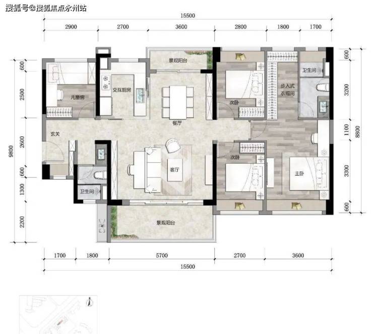 约6米面宽景观阳台,让阳光时刻洒满客厅