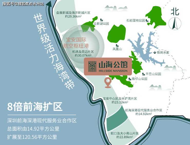 踞前海中轴,北承大空港经济圈发展红利,南接前海自贸区国际级发展赋能,同时广深科技走廊、铁仔山科技城双核环绕,六大战略叠加共振。