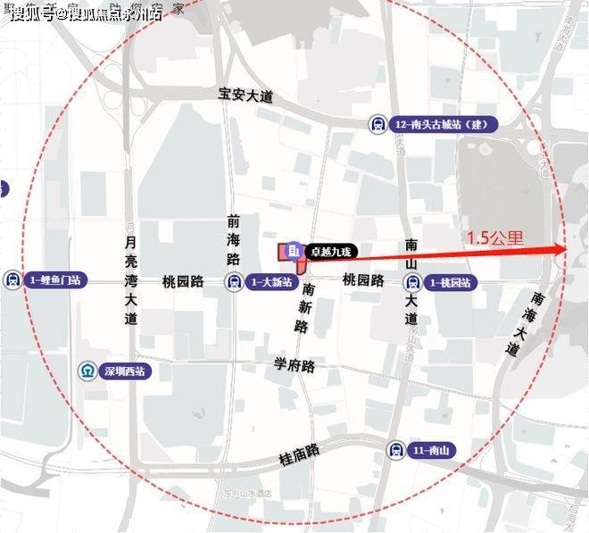 卓越九珑位于深圳市南山区南新路与桃园路交汇、距离地铁1号线大新站300米。