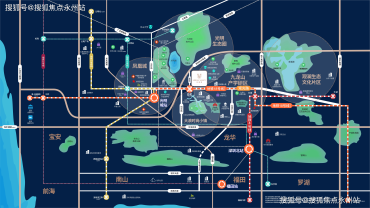 【地铁18号线】1站直达光明城站,换乘13号线(在建),6站到南山