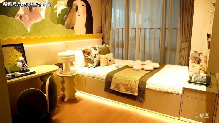 市面上难得一见的次卧套房,专为初高中学生打造,开间约2.9m, 同样带大面宽飘窗和独立卫生间。还可摆放独立书桌柜,打造更大的空间,孩子的学习与生活于此一“室”尽可满足。