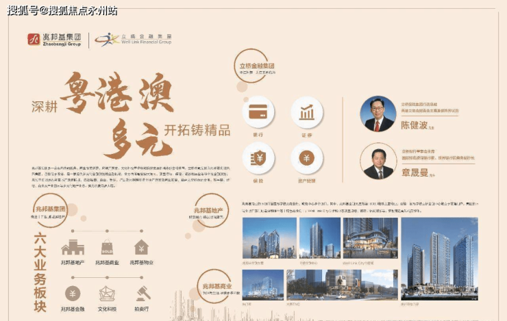 兆邦基集团砥砺前行15载,目前多领域稳定发展,旗下拥有兆邦基地产、兆邦基商业、兆邦基物业、兆邦基金融、文化科技、拍卖行等六大业务板块。