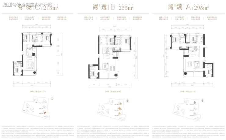 295㎡4+1房四厅四卫:南北通透,最大面宽达16.8米,部分房源可享山海双景。