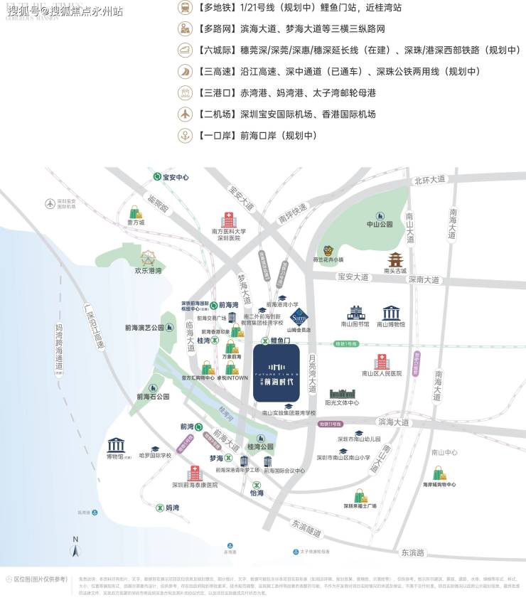 地面交通:滨海大道、梦海大道等城市主干道构成快速路网,15 分钟可达福田中心区,30分钟覆盖宝安国际机场。