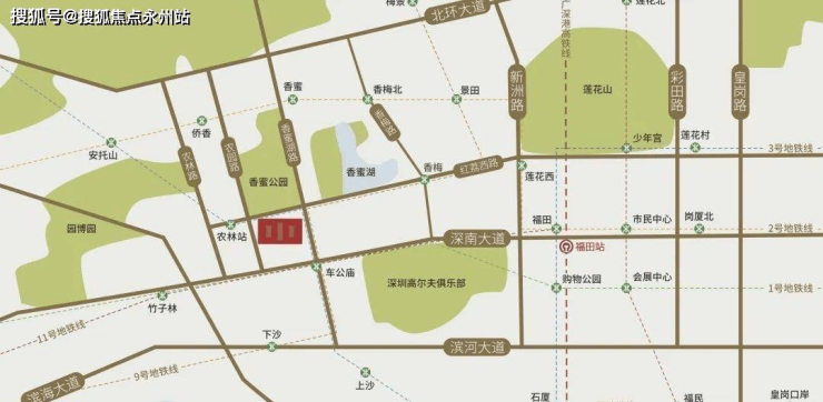 ● 动脉路网:四横(红荔路、深南大道、滨海大道、北环大道)四纵(香蜜湖路、广深高速、新洲路、皇岗路)繁华路网,快速通达全城