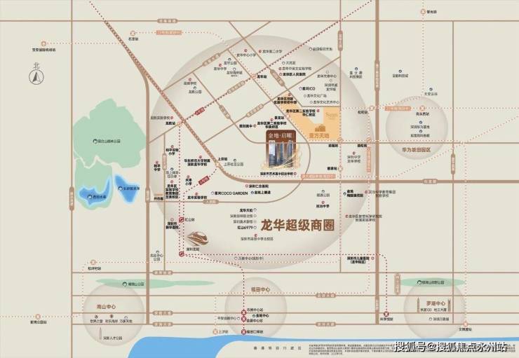 项目位于深圳市龙华区民治街道工业路与人民路交汇处,处于龙华超级商圈核心区,已被纳入深圳都市核心区范围。这一区域在《深圳市国土空间总体规划(2021-2035年)》中获得"双中心"战略定位,即南部民治、龙华街道为都市核心区,北部规划为新一代城市中心,形成南北双轮驱动的发展格局。