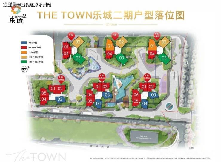 THE TOWN乐城二期,备案名:颐安雍悦华府,由6座塔楼住宅围合而成,总占地面积约1.88万㎡,总建面约12.54万㎡容积率4.8。