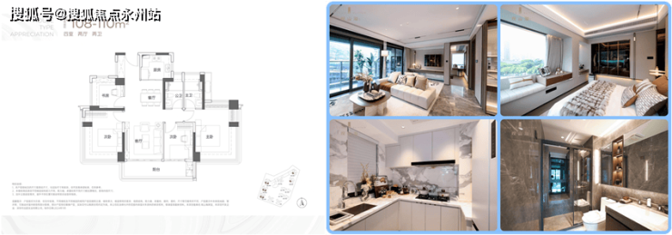 建面约108-110㎡4房2厅2卫:备案单价7.1-9.5万/㎡,总价789-1007万,使用率约78.1%,抛去墙体+飘窗+全部阳台使用率达到85.5%