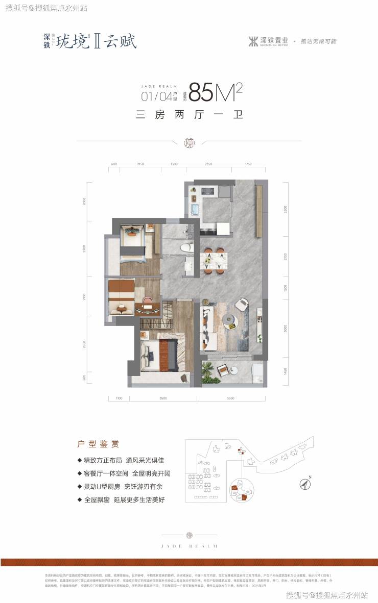 85㎡三房一卫:419万起,单价约4.9万-5.4万/㎡。