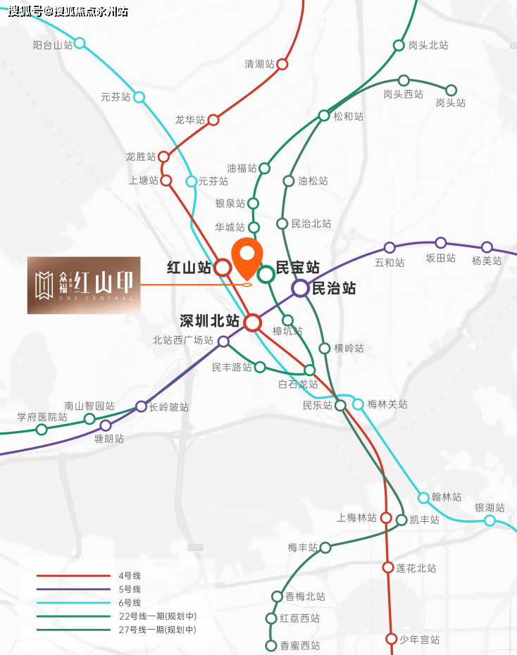 【周边地铁】4/6号红山站;27号线一期民宝站(深圳地铁五期线路,预计今年动工)【无缝对接市政公园】