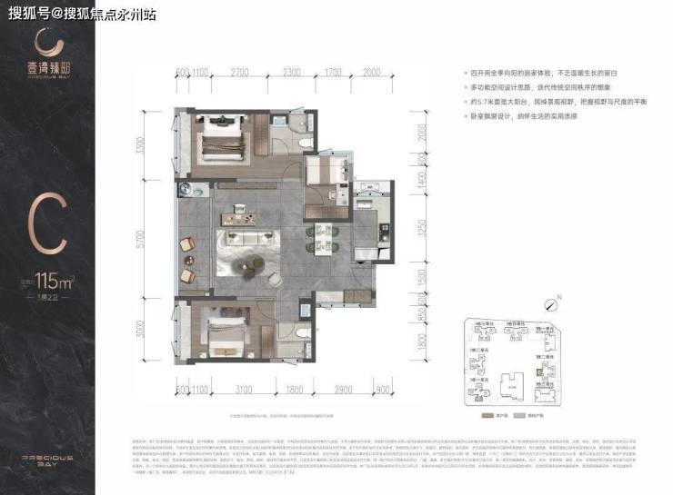 能以115㎡做到这种双龙抱珠户型在前海算比较少众的户型之一,不过同类户型出现过在以往的楼盘不少。总的来说这种户型也是实用性强,过道短不浪费空间。