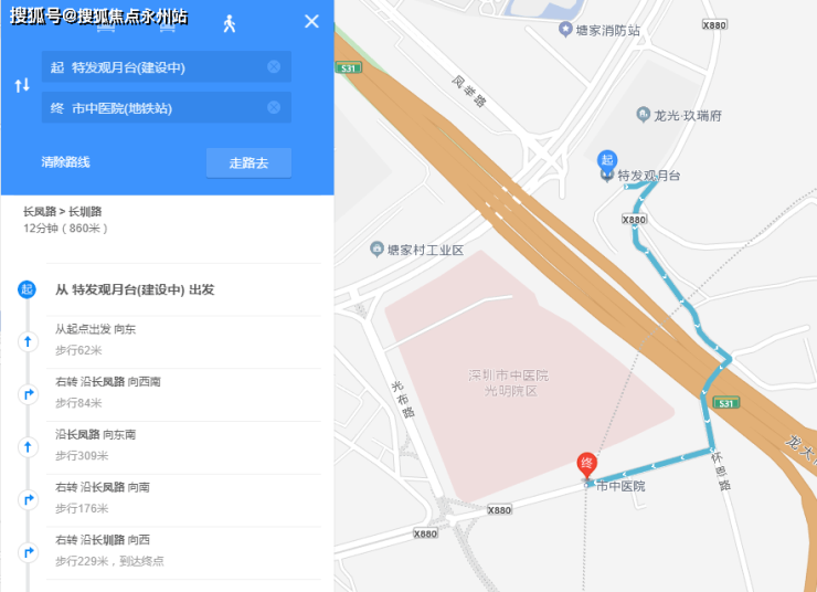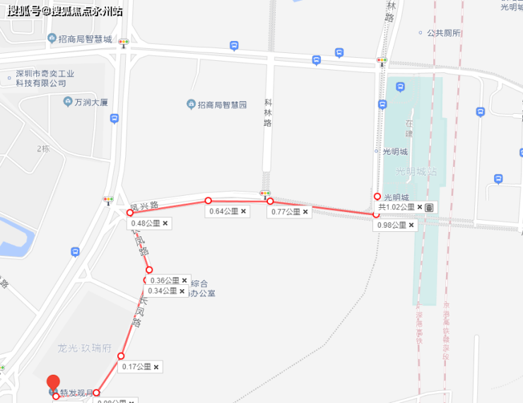 根据地图测距,未来特发观月台北部道路建成后,从项目出发抵达光明城站约1公里,具体以实际出行为准。