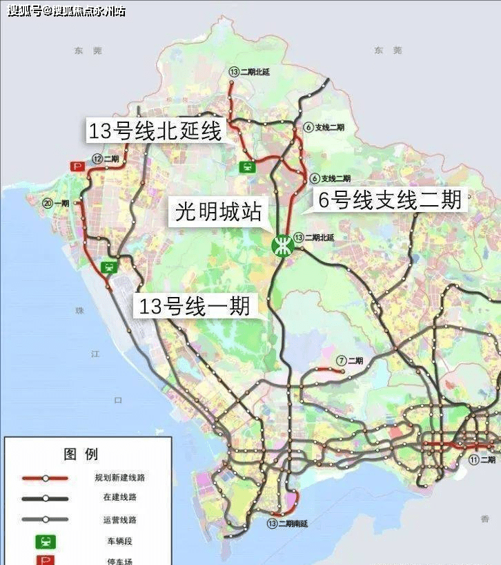 光明城站未来将打造为西北片区的交通枢纽,除了运营的广深港高铁外,目前还在建赣深高铁、地铁6号线支线、地铁13号线,并规划有深莞城际和地铁18号线(规划)等线路。