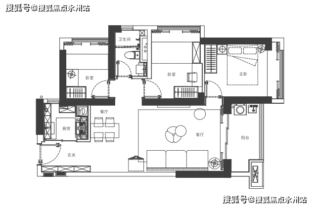 户型是横厅设计,最大的优势是主卧空间特别大,相当于2个房间的面积,可以做独立衣帽间,但最大的缺点也是因为主卧面积太大,其他的功能空间与106-112㎡相差无几,可以说多出来的这10几平米,都放在了主卧上。