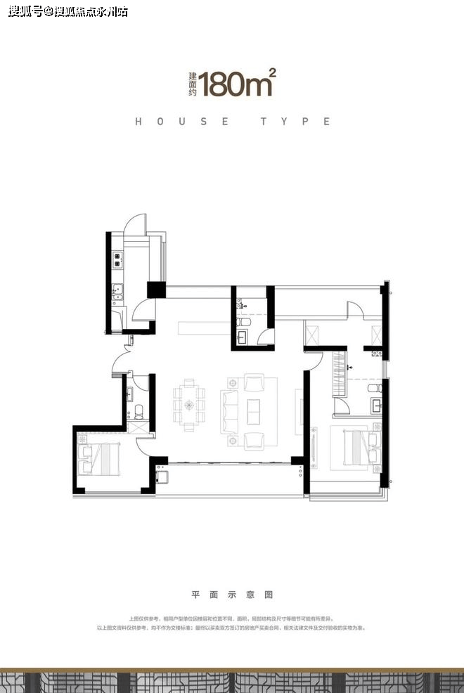 另外180㎡的户型同理,其真实户型是四房三卫南北通大平层。