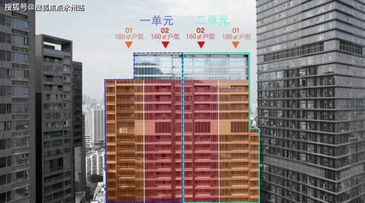 「晗山悦海城」住宅布局属于一字排开,分一二两个单元,每单元各一户160㎡/180㎡户型,主阳台西南朝向看大南山(部分高楼层可侧看海景),餐厅位东北朝向看深圳湾及城市景观。