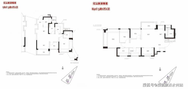 『联发·红山新澍雅居』产品包含建筑面积约69-72-78-80-84-99㎡三至四房,涵盖6个面积段,细分7种户型,横厅竖厅都有。