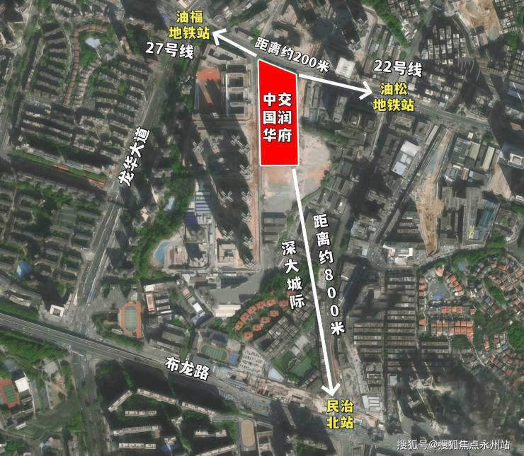 项目构建了“双地铁+城际铁路”的立体交通网络。在建的地铁22号线油松站、规划中的27号线油福站均距项目200米范围内,其中22号线油松站已启动主体围护结构施工,进展顺利。建设中的深大城际民治北站距项目约800米,预计2026年投入使用,开通后龙华至深圳机场仅需20分钟,坪山至深圳机场最快40分钟。