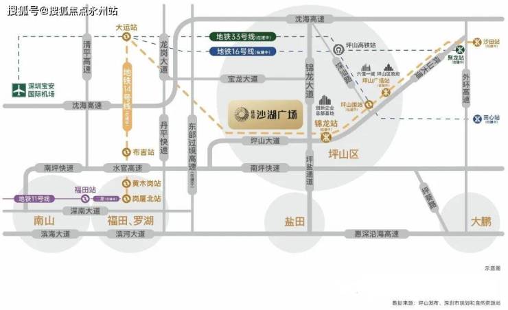 地铁:紧邻地铁14号快线坪山门户站——锦龙站700米(已通车),12站福田岗厦北。地铁16号线(预计2022年内通车)、地铁33号线(在建)