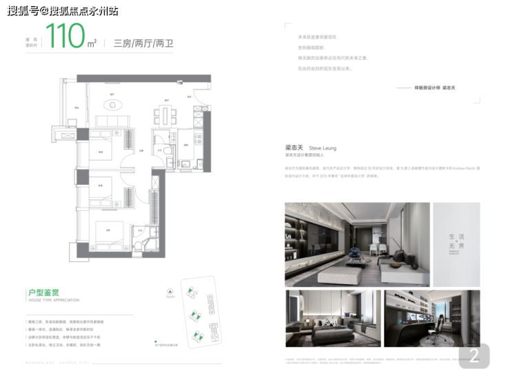 建筑面积约110㎡户型:瞰景三房,卧室标配飘窗,观景阳台展开风景画卷,餐客一体化,连通阳台,畅享全家欢聚时刻,动静分区舒适化营造,休憩与家庭活动互不干扰,主卧私享化,独立卫浴、衣帽间,自在天地一隅