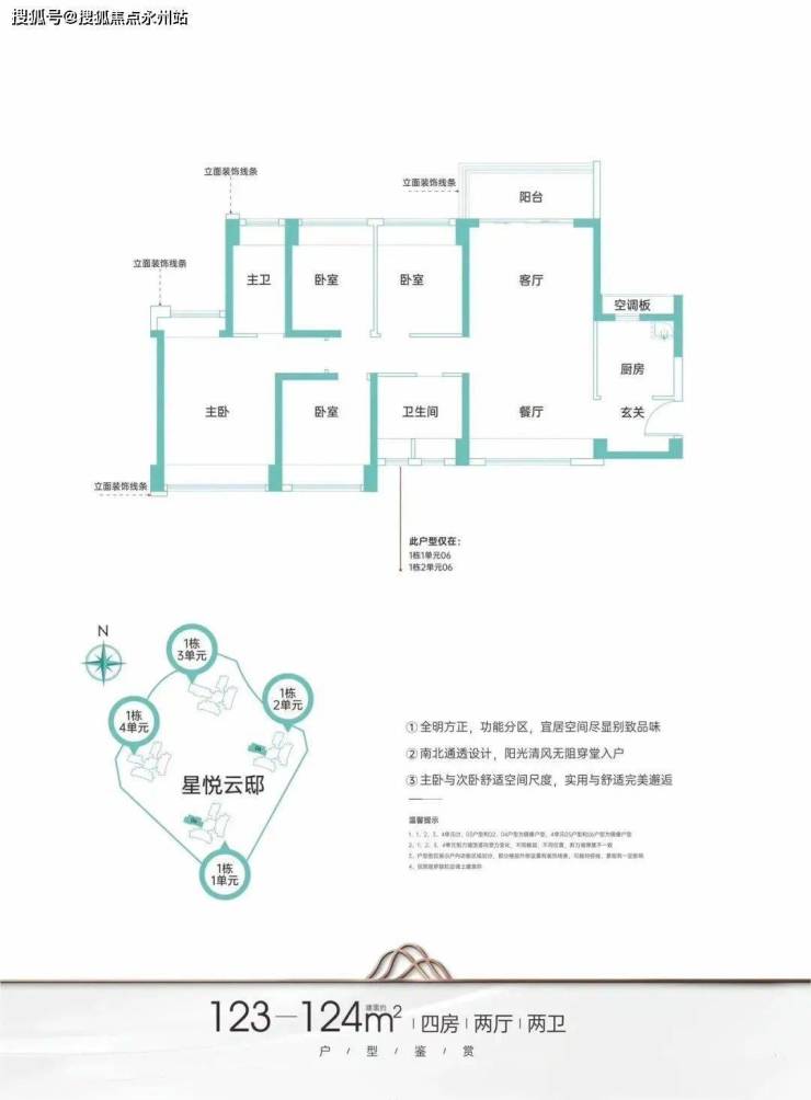 项目共规划有 1007套住宅,主推户型为建面约 95-125㎡3-4房。