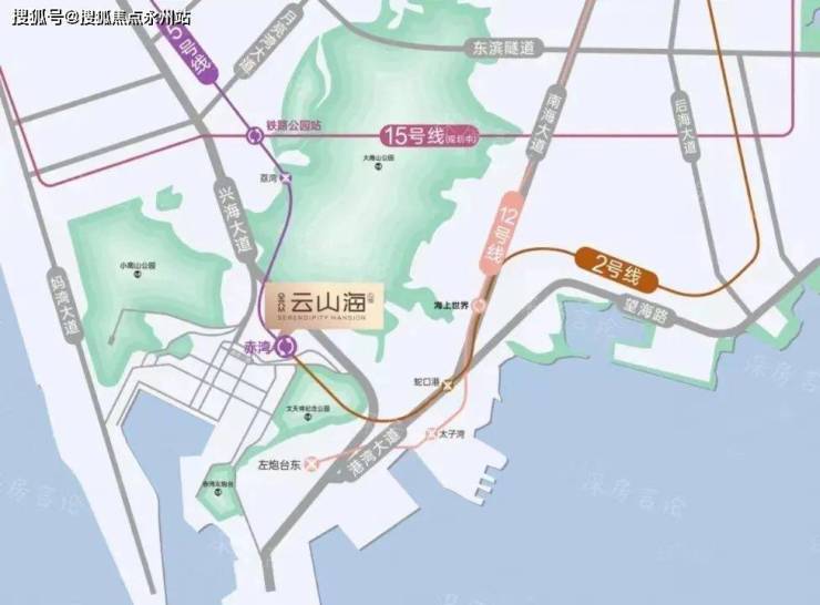 交通配套:项目位于2号线和5号线交汇的赤湾地铁站,项目紧邻赤湾站——2号线与5号线的交汇站,距离项目2km范围内还有在建地铁12号线左炮台站,同时片区内还规划有地铁28号线,未来公共交通发达。同时,项目可通过小南山隧道或港航路汇入兴海大道,连通前海、后海、宝中等区域。