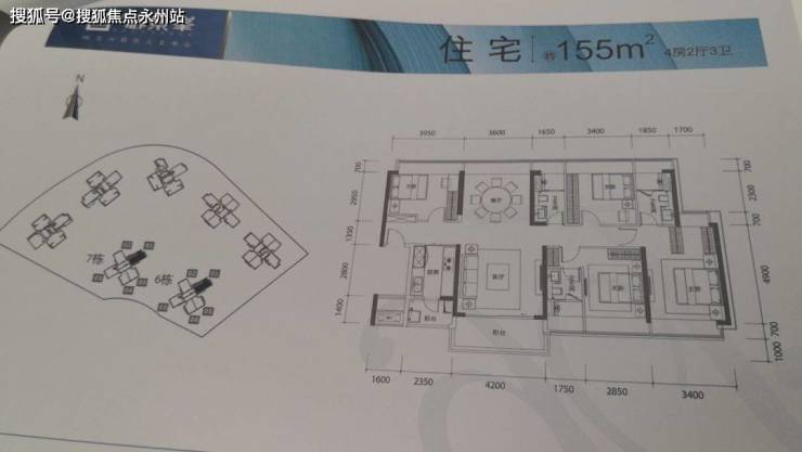 01户型 约155㎡四房两厅三卫。位于7、8栋朝向东南,双向景观,大面宽通透布局具有优秀的通风采光效果,客厅开间4.2米带1.7米进深大阳台明亮舒适。双套间设计,主卧开间3.4米宽敞明亮自然通透,衣帽间可自然同分采光。次主卧开间2.85米尺度稍有不足,北向次卧开间分别为3.4米3.95米宽敞明亮。入户门方向对隐私保护相当到位,入户公共区域宽敞相对独立。