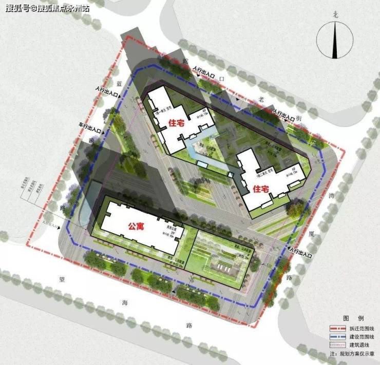 项目由2栋住宅、1栋公寓以及商业和公共配套组成。其中1-1栋45F三梯五户,西南朝向的中高层可以看海景;1-2栋44F三梯五户,前方有公寓遮挡,景观受限。