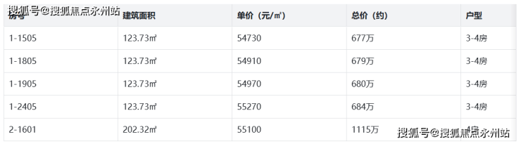 123-129㎡三房:单价5.3万-5.5万/㎡,总价约677万-690万,如1-1505单元(123.73㎡)单价54730元/㎡,总价677万;1-2405单元(123.73㎡)单价55270元/㎡,总价684万。