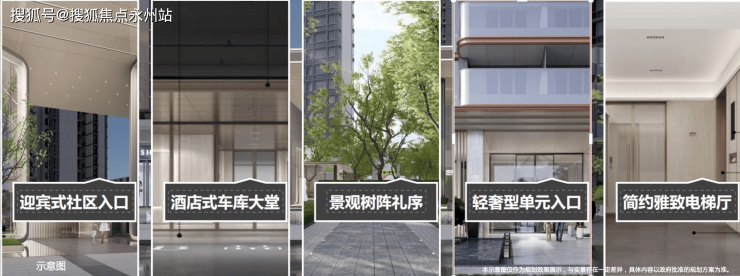 社区打造“峰境五重归家礼序”:巡宾式社区入口→酒店式车库大堂→景观树阵礼序→轻奢单元入口→雅致电梯厅,归家动线充满仪式感。