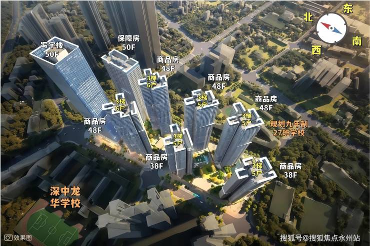 项目核心参数如下:总占地面积约3.72万㎡,总建筑面积达40万㎡,计容建筑面积约29.9万㎡,容积率8.0,整体分南北两个地块开发。其中北地块规划1栋写字楼+3栋住宅,南地块全部为居住用地,建设4栋住宅,合计7栋38-50层高的住宅建筑及1栋50层写字楼,配套1所12班制幼儿园。(深圳龙华中交国润华府售楼处电话:400-992-0669)