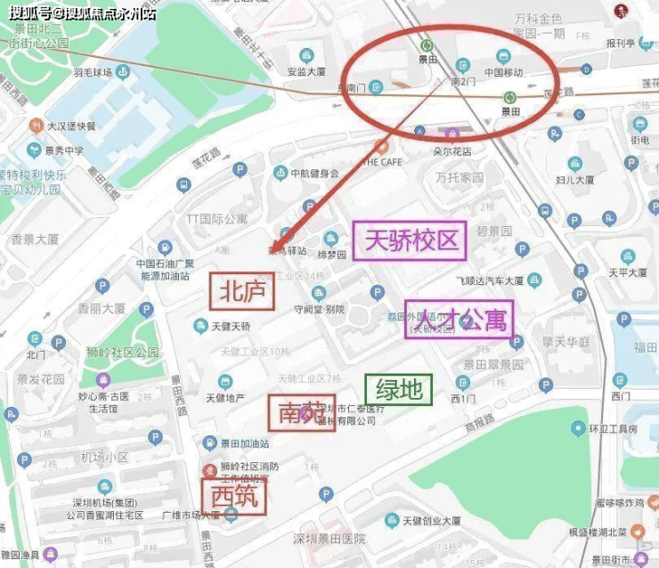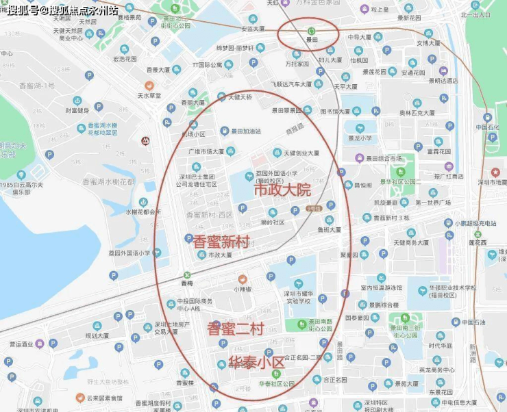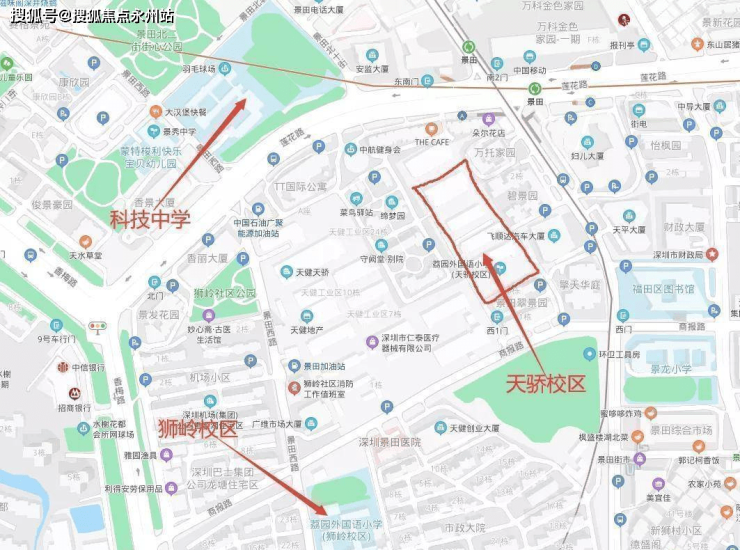 天健天骄位于深圳福田莲花街道,莲花路与景田路交汇处西南侧,一路之隔便是香蜜湖豪宅区。