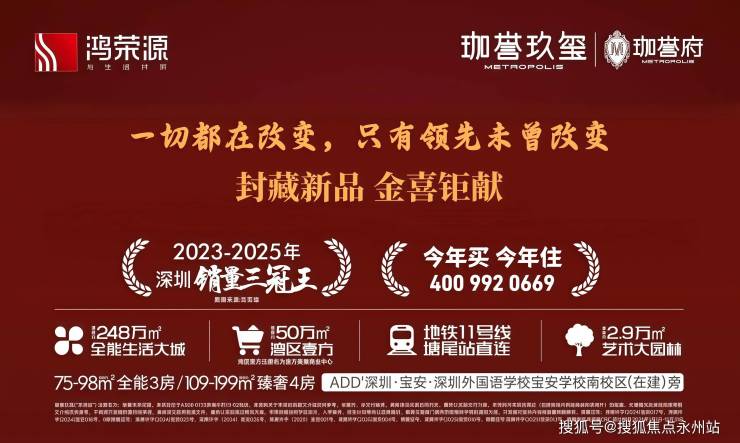 宝安沙井248万㎡超级综合体收官之作——鸿荣源·珈誉玖玺,折后单价4.5万/㎡起,总价358万起就能拿下地铁口+名校旁的精装三房!