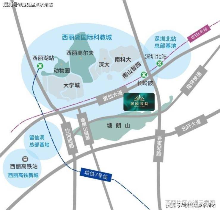 项目位于南山区西丽街道大学城片区,在南方科技大学东侧,距离5号线长岭陂地铁站仅80米,交通便利,一站即可到达深圳北站,项目北临留仙大道,东南向是塘朗山公园,西面是贯通深圳南北的大沙河生态走廊,项目本身界于山河之间,景观资源优质,周边环绕留仙洞总部基地,西丽国际科教城,深圳北站总部基地,三大产业科研聚集地,未来发展前景不错。 (深圳南山汉园茗院售楼处电话:400-992-0669)