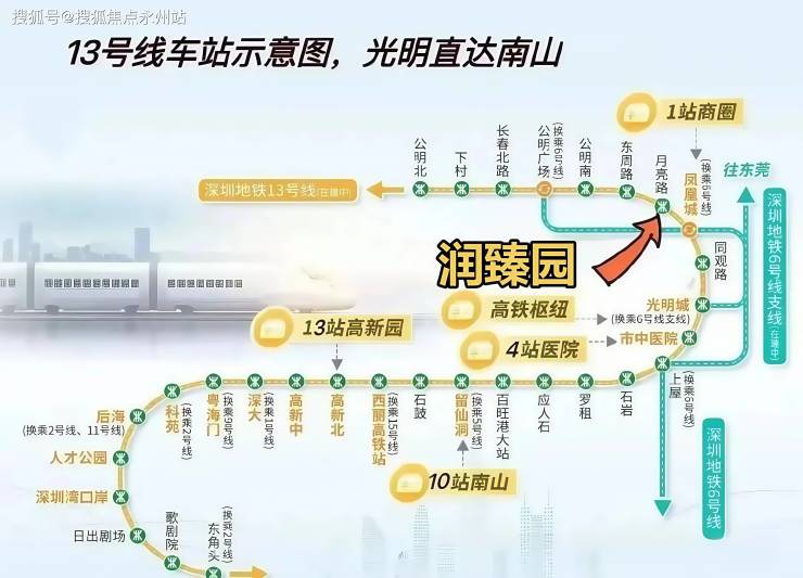 项目距离地铁13号线月亮路站(在建)仅约 300 米,预计2025年底通车后,1 站直达凤凰城换乘 6 号线,3站至光明城高铁站,快速串联南山科技园、后海总部等核心区域,未来还将接驳东莞松山湖,形成大湾区黄金轴线。周边松白路、南光高速、龙大高速等主干道环绕,自驾半小时可达南山。