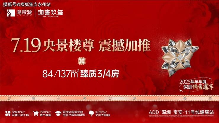 宝安沙井「鸿荣源·珈誉玖玺」全新楼王单位10栋1单元新品7月14日已取证入市,7月19日开盘直接认购!面积有84㎡的3房2卫,137㎡的4房2卫户型。