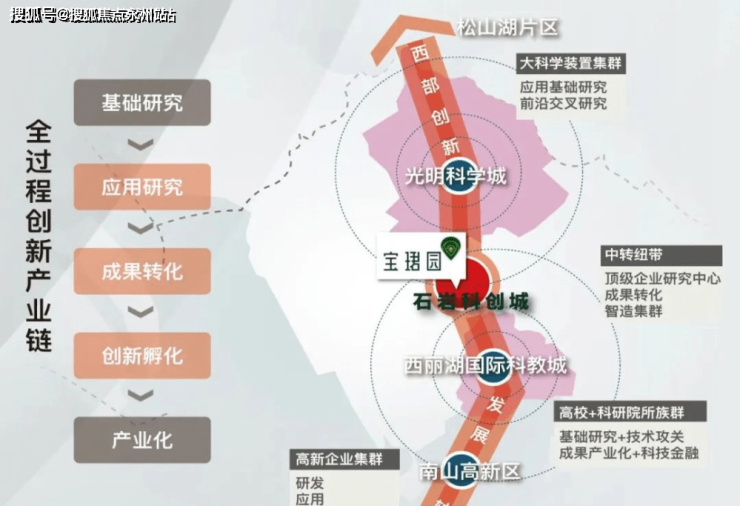 项目区位宝安石岩,处于南山西丽与光明凤凰城之间,石岩科创城是宝安五大发展极核之一,宝安区经济主力军,2020年GDP约492亿元,排名全区第二;规模以上工业总值约1757亿元,排名全区第一;百亿级企业数量独占全区半壁江山。