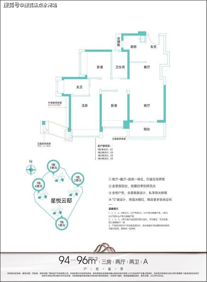 "悦享精研户型,主力户型95-124㎡三至四房,全明户型,通风采光好,卧室飘窗,打破常规,品质人居典范。"