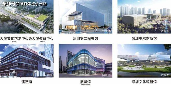 "五馆一体,双子星文体中心建设中,约1公里范围享受大浪文化艺术中心和体育中心;约10公里范围连接深圳第二图书馆、美术馆新馆、演艺馆、展览馆和龙华市政四馆,简上体育综合体、深圳书城和龙华文体中心。"