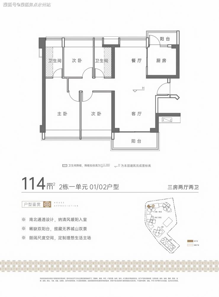 项目于2024年5月10日取证入市,推售建面110-114㎡的3房2厅2卫,133㎡的4房2厅2卫户型精装住宅,建面约38-70㎡轻资芯寓,户户臻配阳台。
