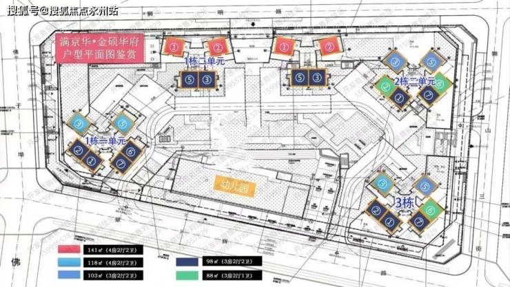 项目共由3栋5个单元的超高层住宅及1栋12班幼儿园组成,楼栋物理层高46-48层。现阶段户型面积段和楼栋分布已经流出,户型面积段有建面约88㎡、98㎡、103㎡、118㎡、141㎡五个户型,其中主力户型建面约98㎡为主。(具体以开发商最终公示为准)