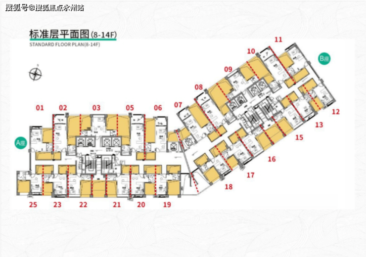 项目位于福田中心区,户型为36-76平1-3房,住宅66套,公寓198套,户型面积都一样,只是产权性质不一样。6-14层为公寓,15-17层为住宅,6梯22户