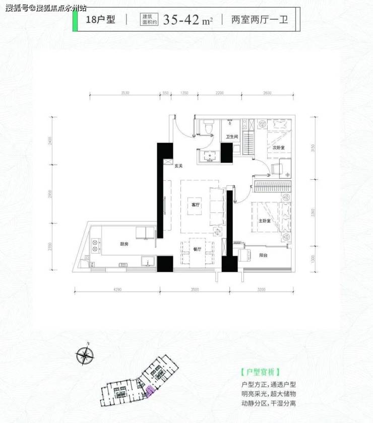 拥有绝佳使用率、建面约42㎡的住宅房源,预计总价要在4字头。几乎都超过100%,其中42㎡的户型更是近130%,以至于不仅做了两房,连次卧都有8个平方。