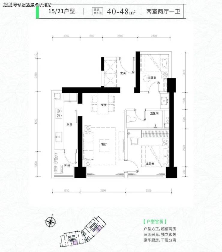 福田即小户型住宅现房——君临天下·君临芯公馆,66套住宅和198套公寓,面积段均为34-76平(一房两厅一卫、两房两厅一卫、三房两厅一卫),使用率高达100%多(每个户型使用率均会有区别)