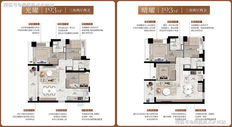 建面约93㎡三房两厅两卫(竖厅/横厅双布局)
